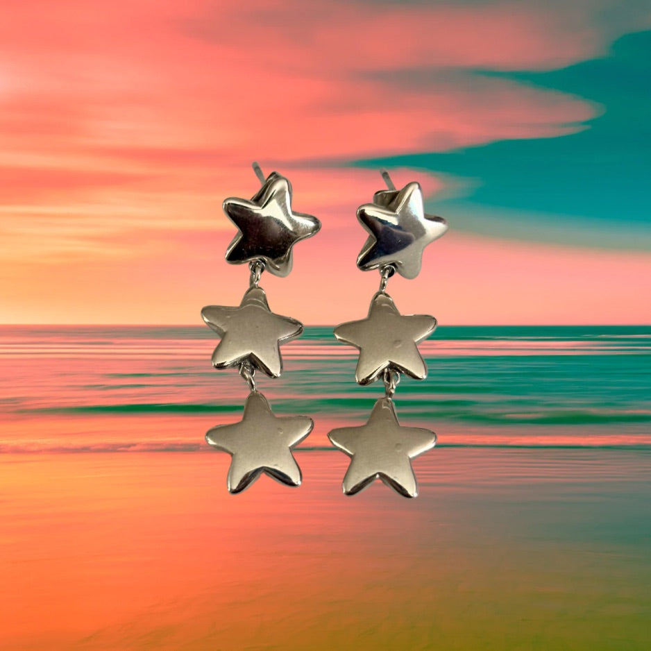 These earrings don’t just dangle—they demand attention. Lightweight and comfortable - perfect for nights out or beach hangs. Also available in gold.